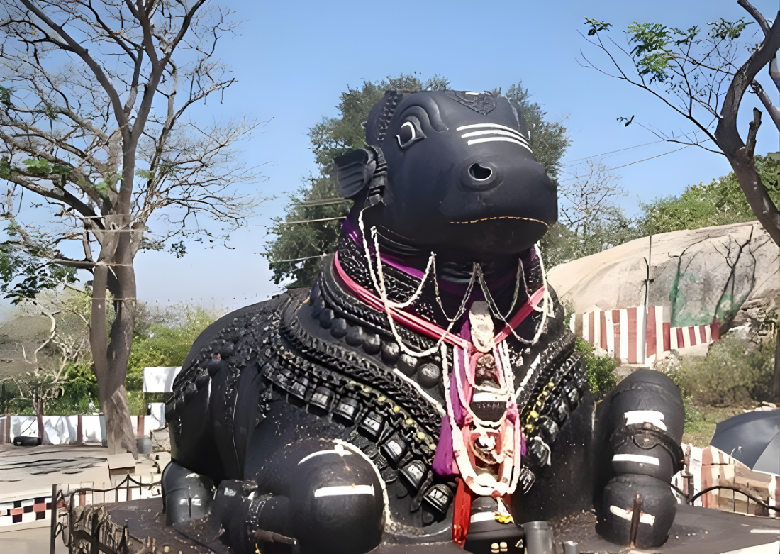 Ancient temple famed for its massive Nandi statue.