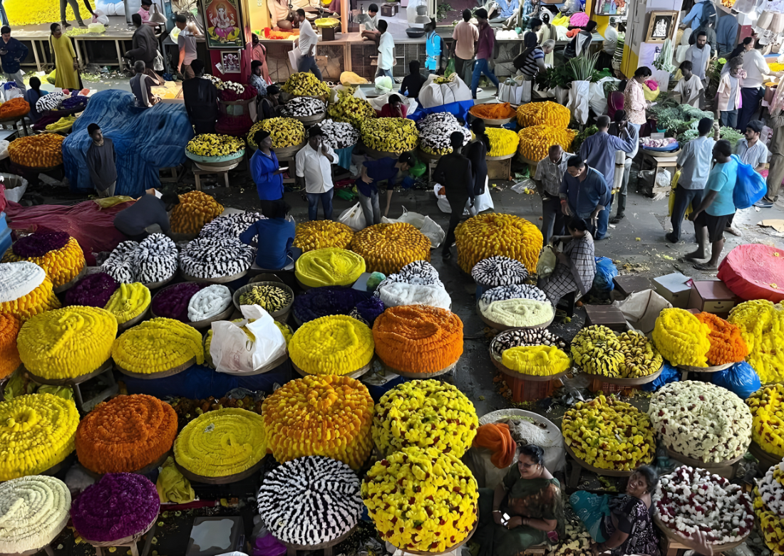 Lively flower market bursting with color and fragrance vibes!